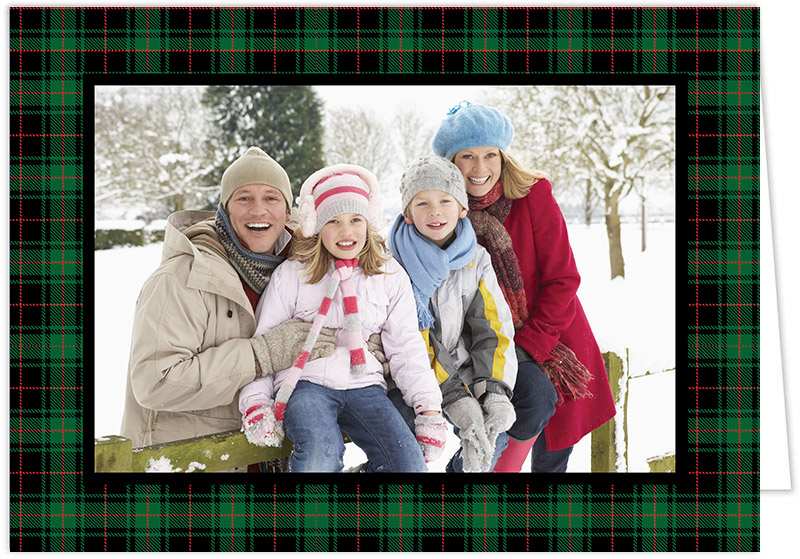 Your family is front and center on this holiday photo mount card which features a Christmas plaid pattern . Card can accommodate a horizontal or vertical 4" x 6" photo (which you mount with your own adhesive).