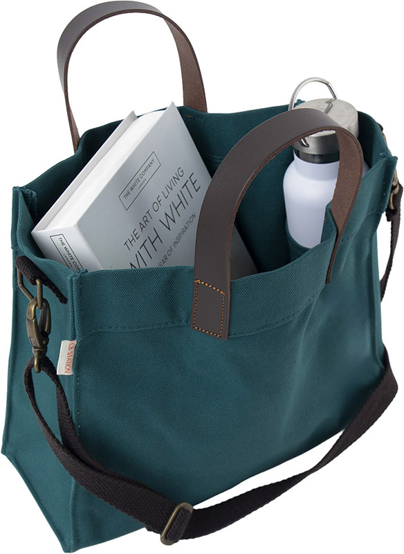 This Teal Mini Advantage Tote Bag is a medium-sized canvas tote with a detachable shoulder strap. Perfect for everyday errands.