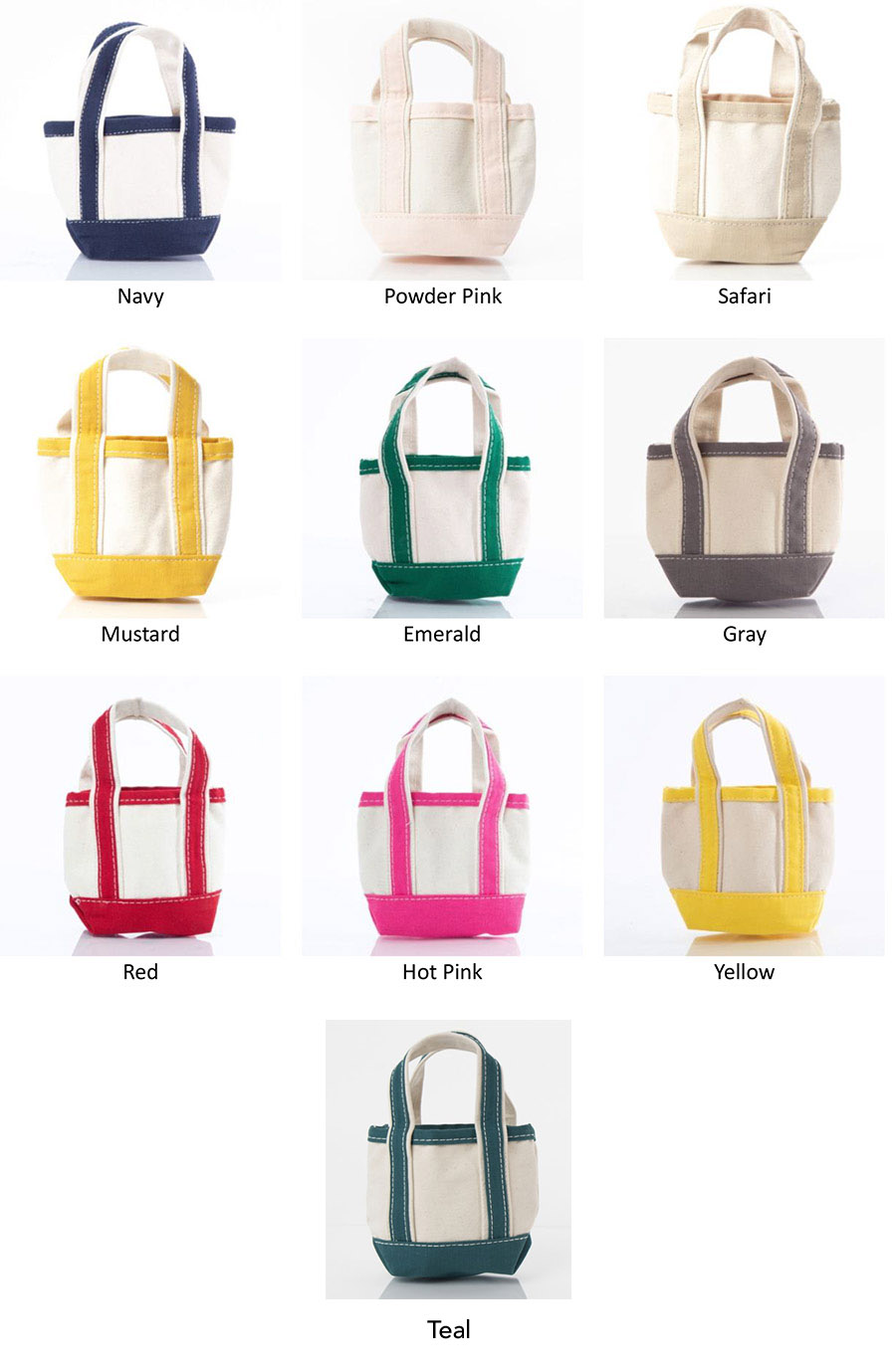 Our smallest and cutest accessory to date, the Mini Tote was designed to be a extra small gift bag resembling the classic look and feel of our timeless Boat Totes.