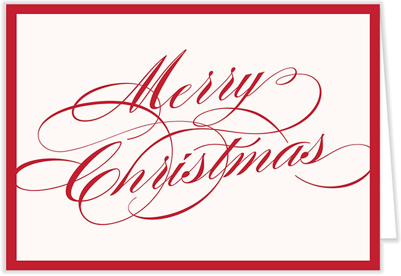 Bold red script reading "Merry Christmas" flows across the front of this modern folding holiday card. Digitally printed for crisp detail and contemporary style.