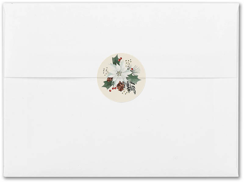 Enhance your holiday correspondence with these sophisticated envelope seals. Featuring a white poinsettia and lush holiday greenery highlighted with enhanced raised foil, these self-adhesive seals add an elegant touch to your cards and letters that will impress everyone on your list.