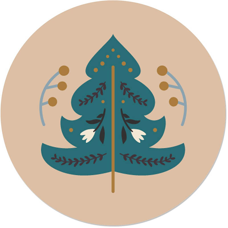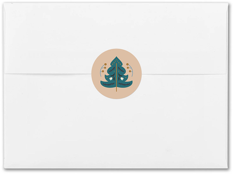 A stylized holiday tree in folk-art design brings rustic flair to this round holiday seal. Digitally printed with soft colors and fine detail.