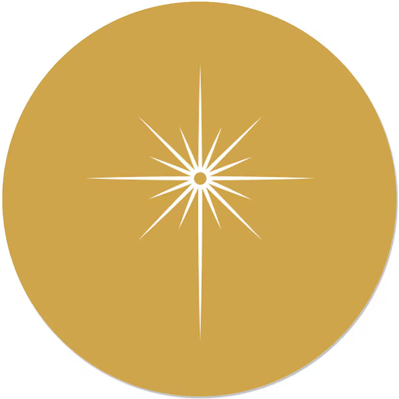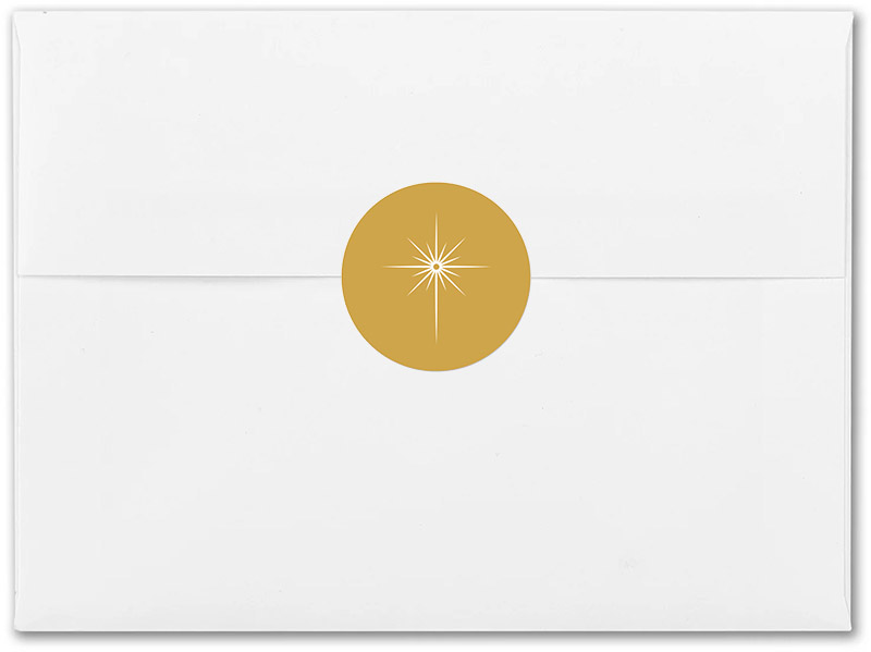 A brilliant star appears in white against a golden background on this round holiday seal. Digitally printed with crisp detail, it's an elegant way to finish your holiday mail.