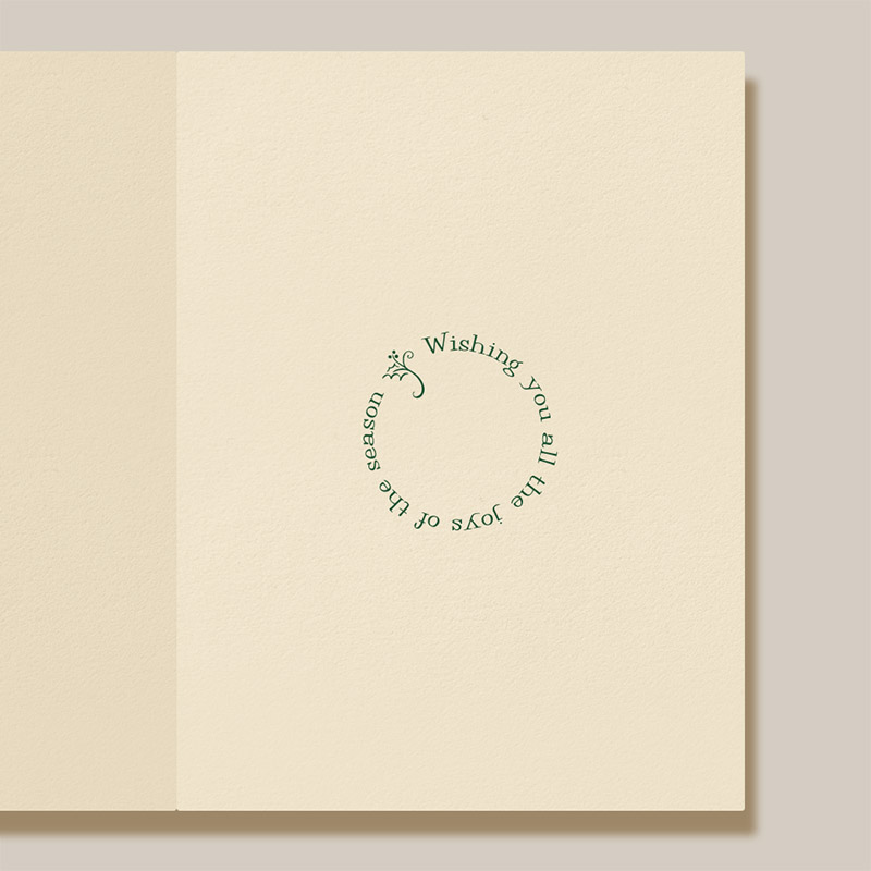 The cards come with a pre-printed sentiment inside, which will be flat printed (not raised) in hunter ink, and cannot be personalized.