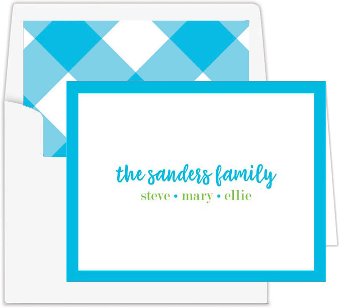 You choose any available ink color for the border on the front of the card (Turquoise shown).
