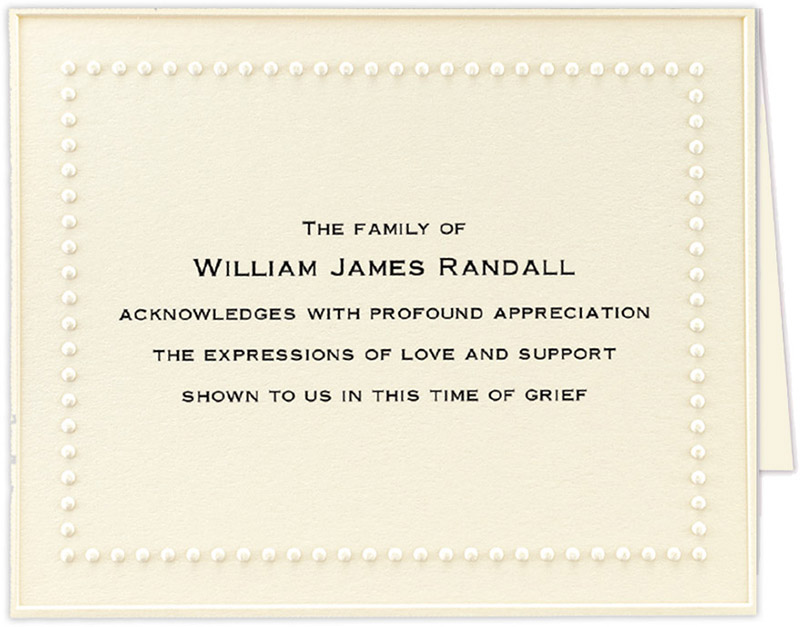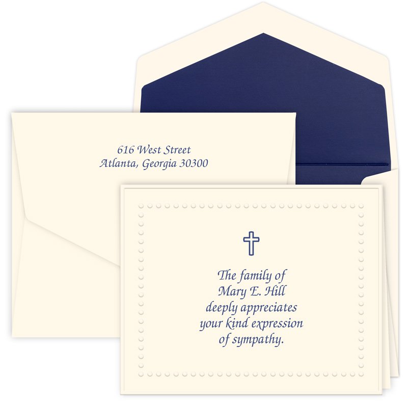 Folded sympathy notes with blind-embossed border details available in ivory or white.
