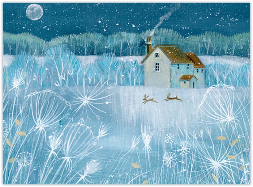 Folded charity holiday greeting card printed on chlorine-free recycled paper with soy based ink. Card contains a pre-printed sentiment on the inside and cannot be personalized.