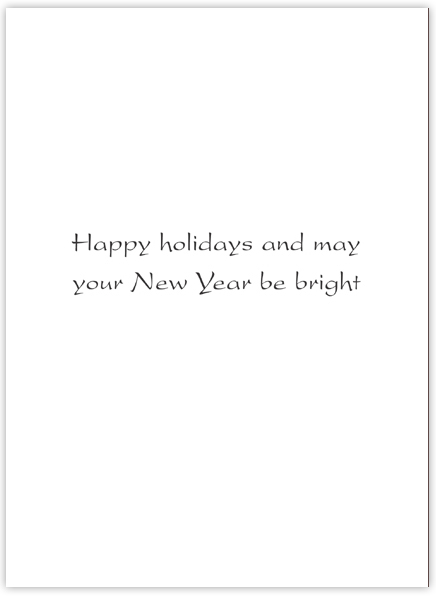 Folded charity holiday greeting card printed on chlorine-free recycled paper with soy based ink. Card contains a pre-printed sentiment on the inside and cannot be personalized.