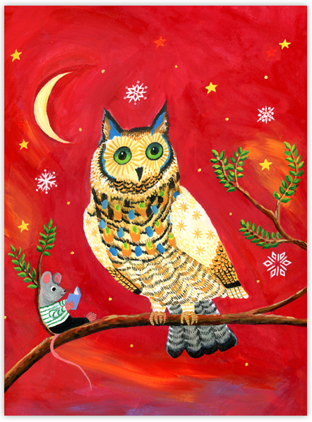 Folded charity holiday greeting card printed on chlorine-free recycled paper with soy based ink. Card contains a pre-printed sentiment on the inside and cannot be personalized.