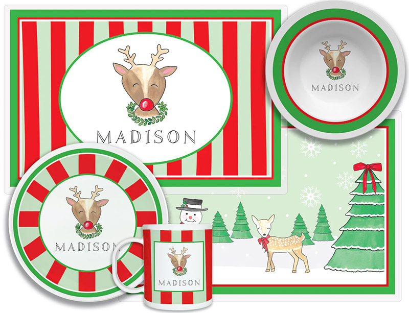 Optional matching laminated placemat and plate available for an additional fee. You may also purchase 3-Piece Sets (Plate, Placemat and Bowl) or 4-Piece Sets (Plate, Placemat, Bowl and Mug).