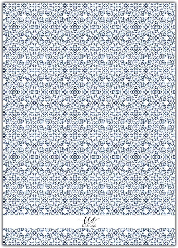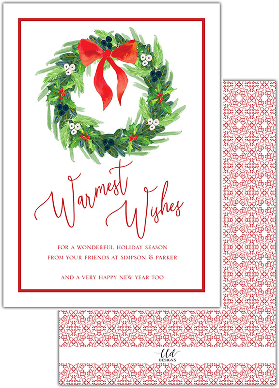 Flat holiday greeting cards. You choose the background and border colors for the front and the pattern color for the back of the cards.