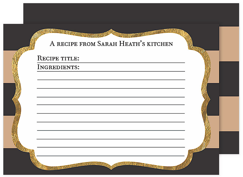 You personalize the top line of the card - the words "Recipe Title:" and "Ingredients:" are standard but will print in the ink color and typestyle you choose.