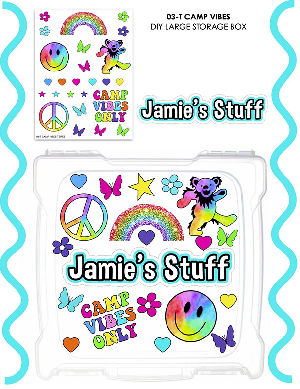These customized and personalized plastic drawers are super helpful for organizing your camper's stationery and other small items.