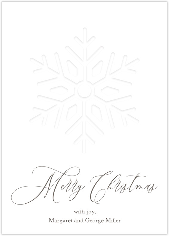 Flat holiday greeting cards with a debossed snowflake on the front.