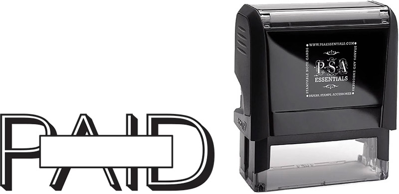 Self-inking rectangle office stamp with design by PSA Essentials. Formatting is only as shown - these cannot be personalized.