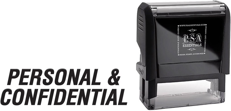 Self-inking rectangle office stamp with design by PSA Essentials. Formatting is only as shown - these cannot be personalized.