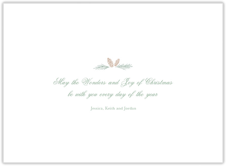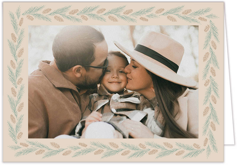 You attach your photo on the front of this white folded holiday card with a changeable background color (aspen shown).