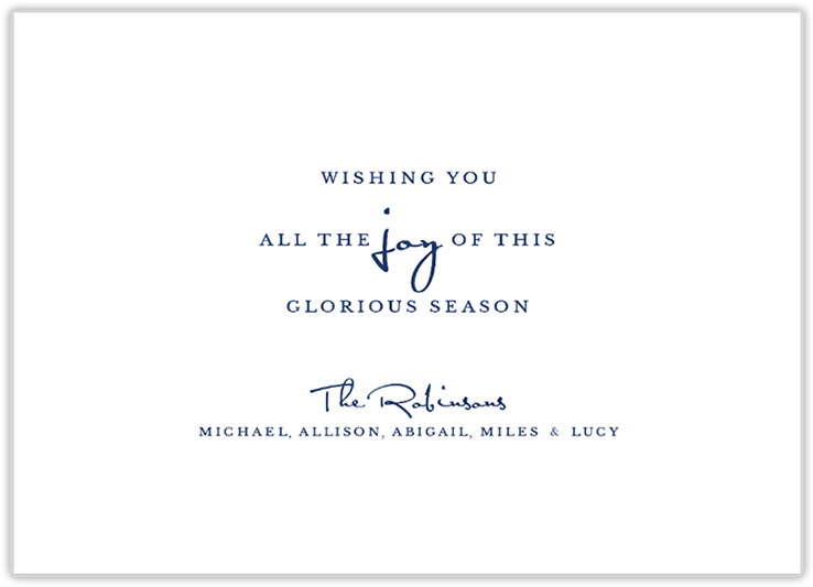 Navy shown. Choose any available ink color for your personalized text. You can also elect to have your personalized text foil stamped on the inside of the cards for an additional fee.