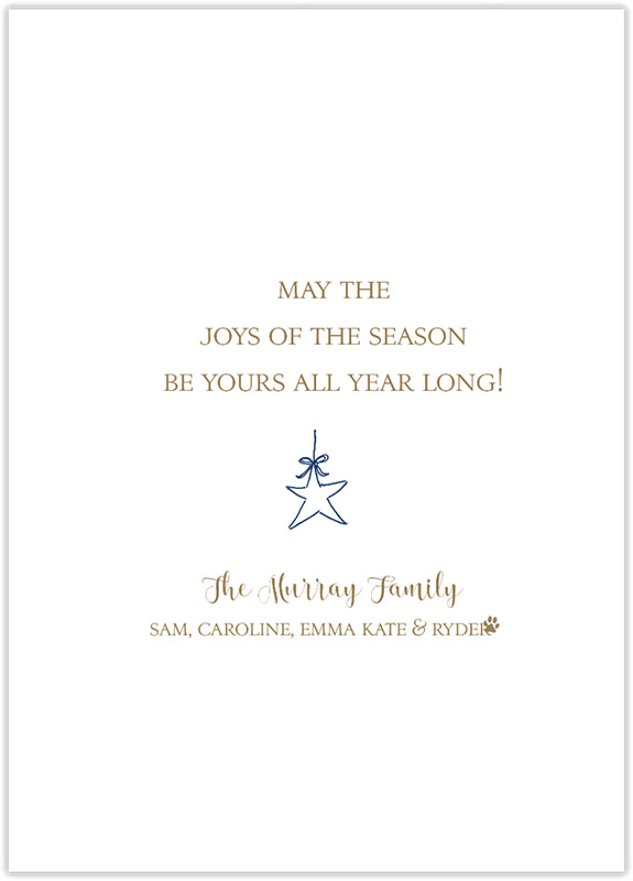 NONE of the text - including the words "Merry Christmas" on the front - is standard. You supply ALL of the text to appear on the front and inside of the card.