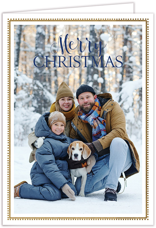 You choose the background color for the front (white shown) and the foil color for the border (gold shown).