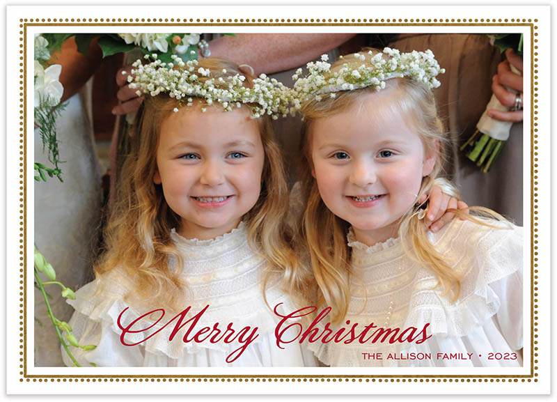 NONE of the text is standard - you choose all of the text to appear. We print your digital photo on the front of this card.