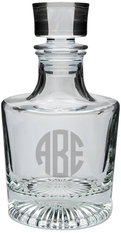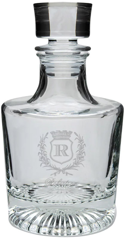 Custom engraved lead free glass 750ml decanter for liquor, whiskey, scotch, bourbon, vodka or wine.