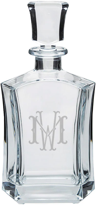 Custom engraved lead free glass 750ml decanter for liquor, whiskey, scotch, bourbon, vodka or wine.